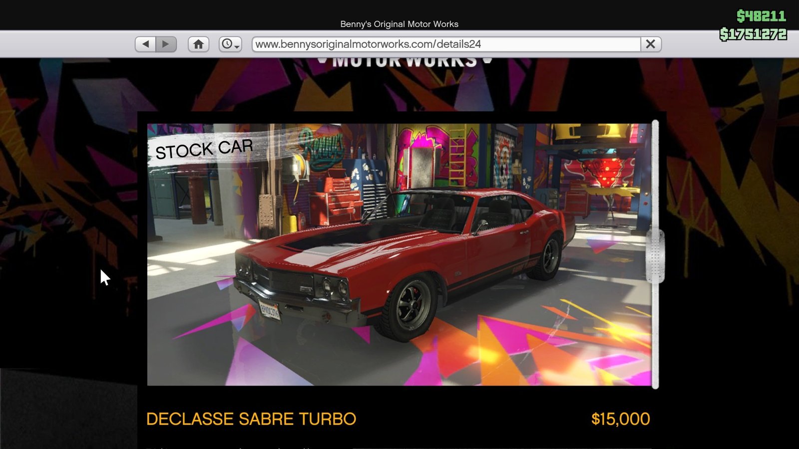 “Tricking out a near-perfect muscle care like the Sabre is a fine art. A mainstream mod shop won’t understand that its deafening wheelspin isn’t inefficient – it’s foreplay a car like this requires. Its brakes aren’t dangerously unresponsive, they’re smooth and gradual/ The lack of protection isn’t careless, its thrilling. Luckily for you, here at Benny’s we can serve a whole lot of style without adding one tiny bit of substance. It’s what a car this stupid deserves.” (bennysoriginalmotorworks.com – GTA V Online)